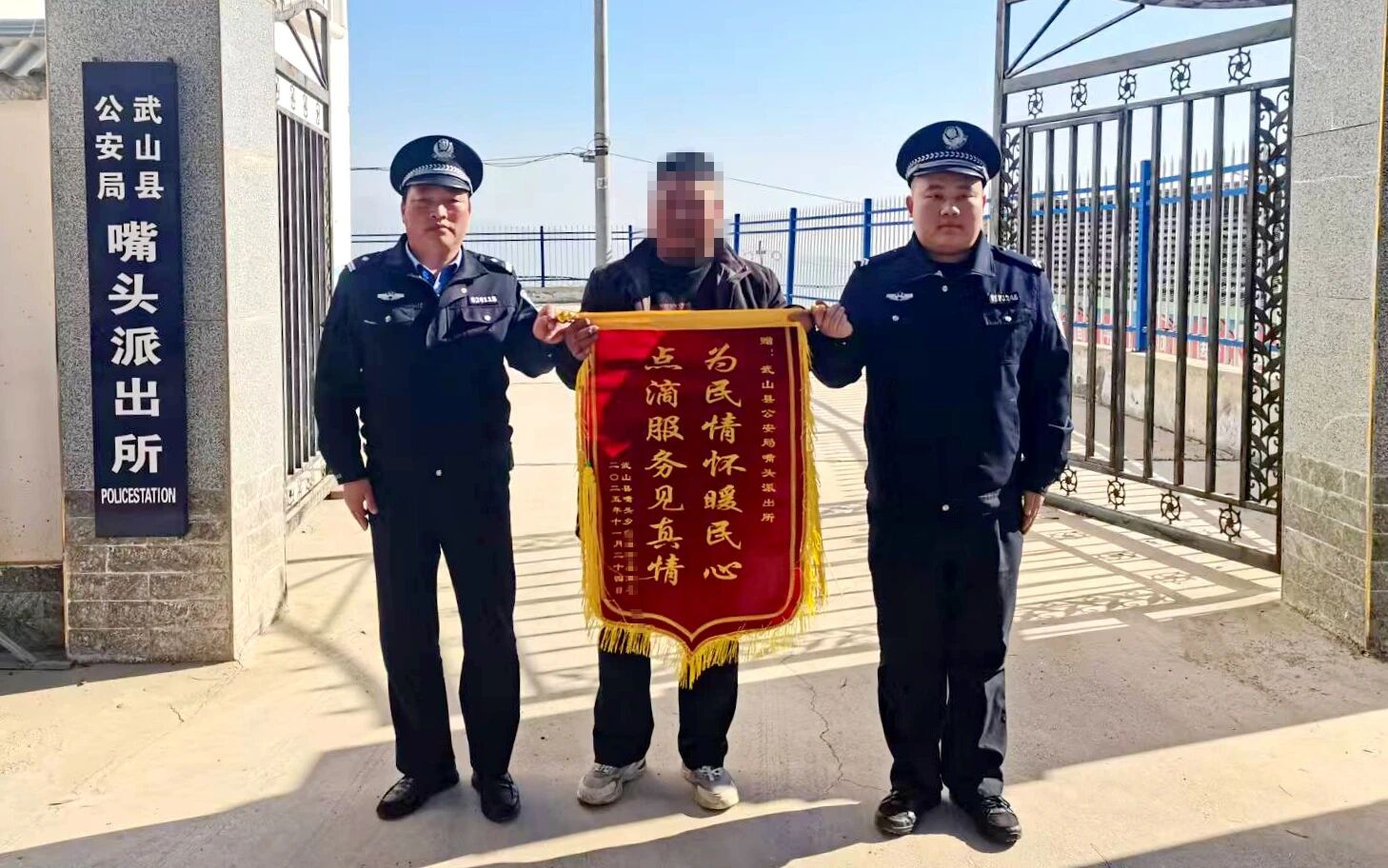 11月28日,康某将一面锦旗送至嘴头派出所,对民辅警及时帮助挽回损失表示感谢。