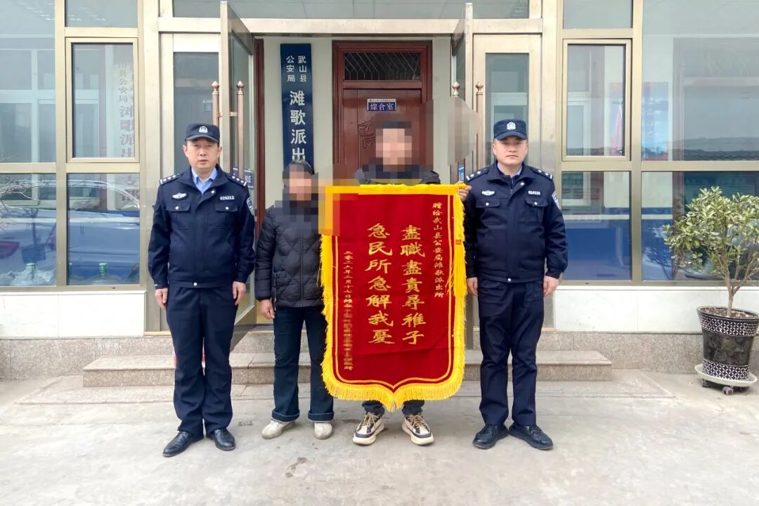 经过五个多小时紧张而有序的排查,综合多方信息,民警最终研判出孩子可能前往武山县山丹镇的方向。晚上8时许,搜寻力量聚焦至城关镇,并成功找到了独自在此处的孩子。经初步检查,孩子身体无恙,民警随即将其安全护送回家。“孩子是家里的天,那天要是没有你们这么拼命帮忙,我们真不知该怎么办了。”送锦旗时,漆某握住民警的手,语气哽咽。面对群众的真挚谢意,参与搜寻的民警表示:“锦旗虽轻,情义深重。这既是认可,更是责任。看到一家人团圆,所有的辛苦都值得。”一面锦旗,一声感谢,背后是群众对公安工作的信任与鼓励,也映照出滩歌派出所践行“人民公安为人民”的初心。