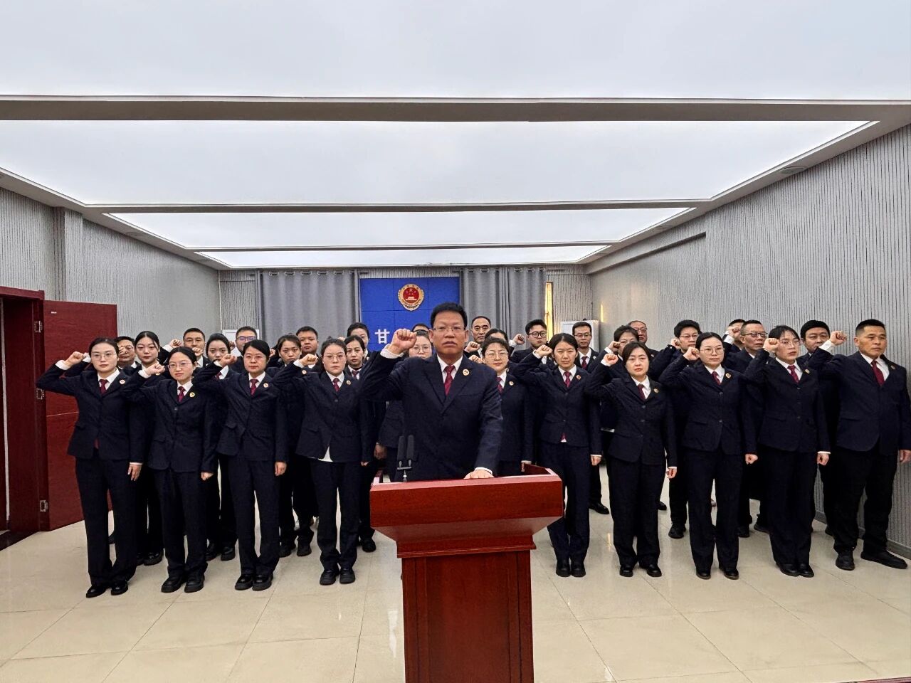 12月4日,甘谷县人民检察院举行宪法宣誓仪式,院党组书记、检察长邵新建领誓,全体干警参加。