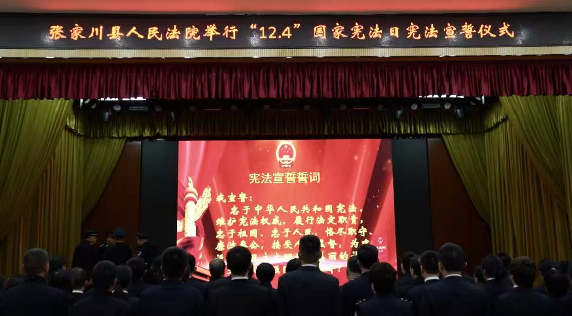在第十二个国家宪法日之际,以“学习宣传贯彻习近平法治思想,推动宪法深入人心”为主题,12月4日上午,张家川县人民法院举行庄严的宪法宣誓仪式,党组书记、院长王海洲领誓,全体干警齐聚审判大楼,在国旗国徽见证下,许下司法为民承诺,彰显基层司法队伍的法治担当。